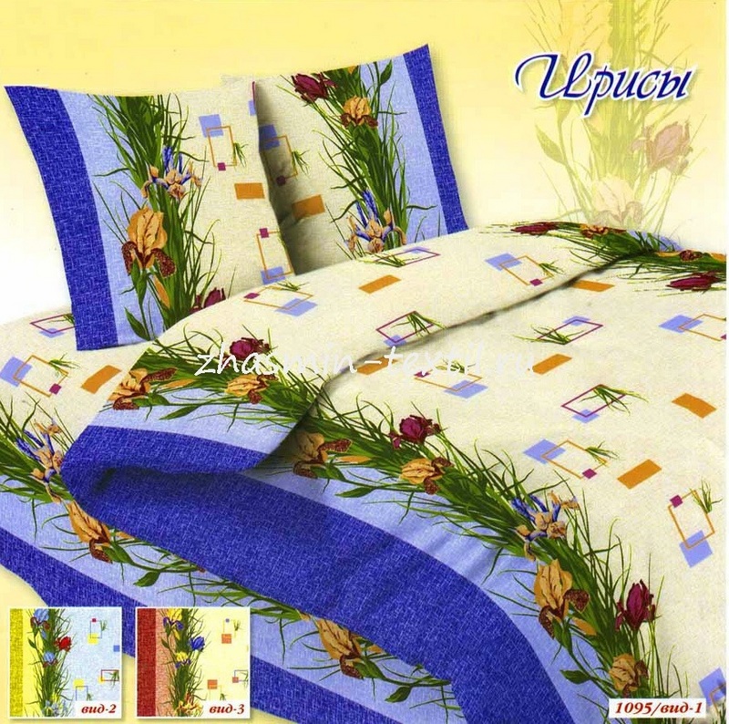Постельное белье Бязь 1.5-спальное 1/3 Ирисы синий